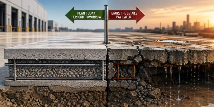 Understanding expected traffic patterns during design can improve durability. Thicker slabs, better reinforcement, or harder surface finishes in high-impact areas can reduce uneven wear. It is easier to reinforce a loading dock during construction than to explain later why forklifts have carved their own design into the floor.