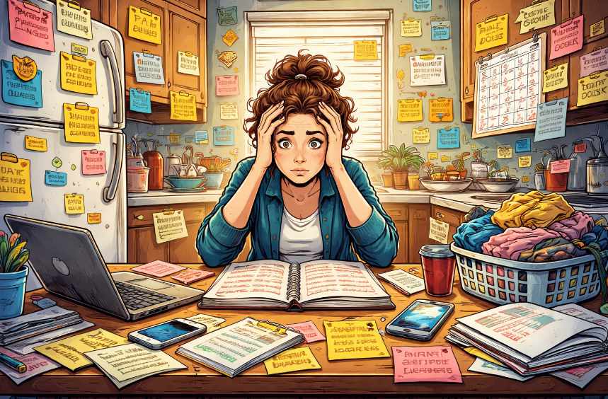 Mental load becomes draining because it creates constant cognitive switching. One minute you are answering a work message, the next you are trying to remember if the permission slip went back into the backpack, and then your brain opens a fresh tab labeled "buy birthday gift for cousin." By noon, your attention feels like a browser with forty-seven windows open and one of them is playing music, but nobody knows which one.